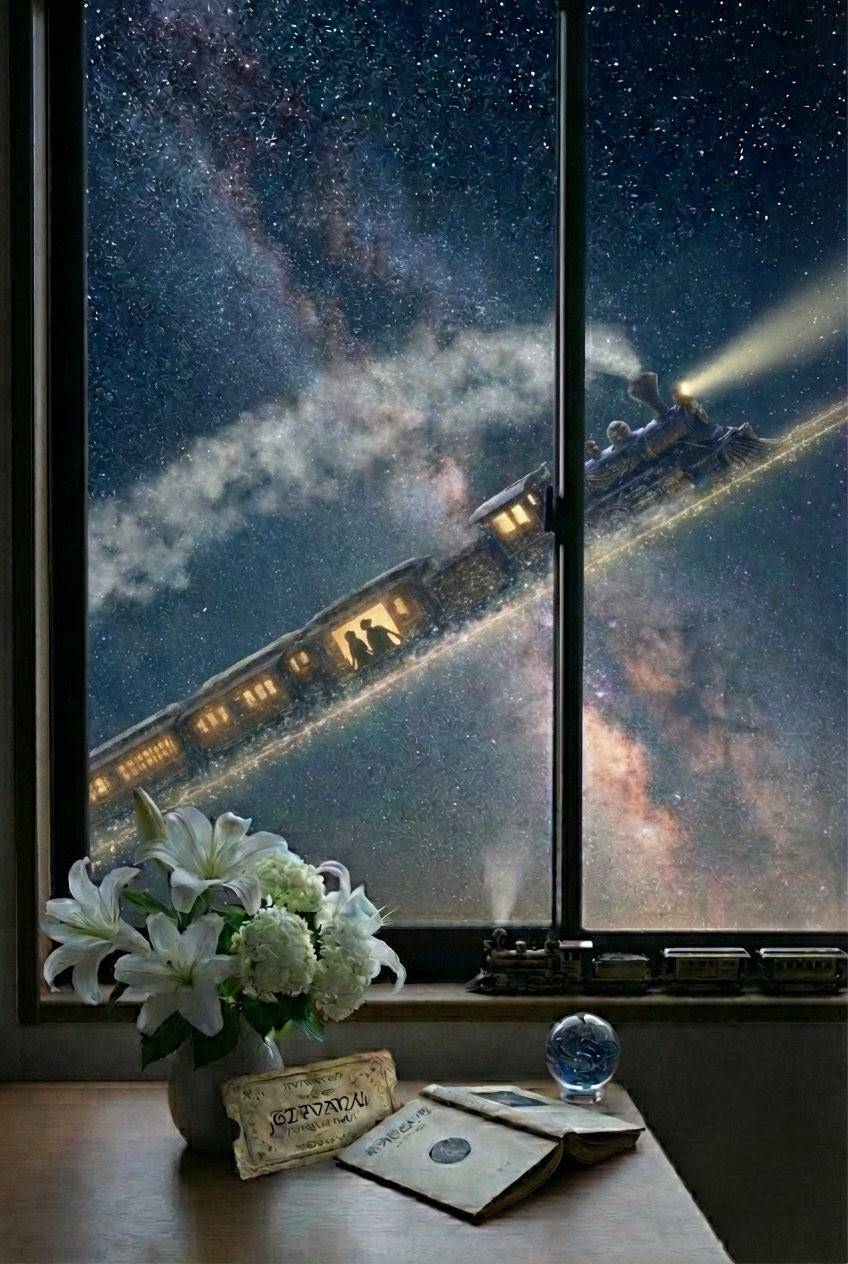一方で、親友カムパネルラの切符は「天上へ向かう片道」でした。 同じ列車に乗り、同じ景色を見ていても、行き先は決定的に違っていた。 生きている者と、旅立った者。その境界が、星明かりの下で静かに浮かび上がります。