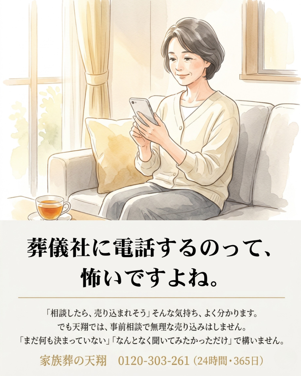 悲しみの中で、葬儀社を一から探すのはしんどい。信頼できる葬儀社の連絡先を一つだけ、スマホに入れておくと安心です。