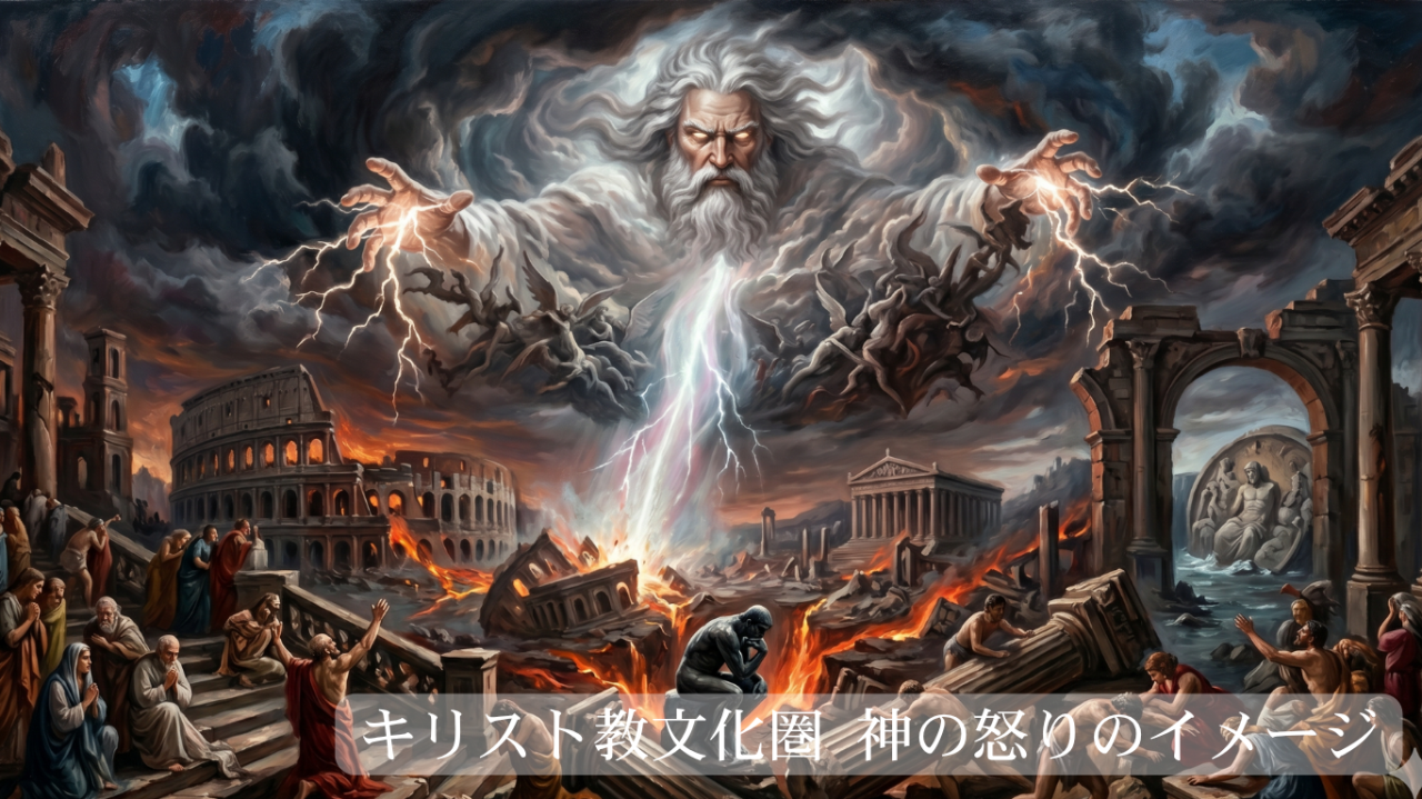 ギリシャ神話の軍神アレスは、力と暴力の象徴として彫られました。キリスト教美術に描かれる神の怒りは、人を天国と地獄に振り分ける「裁きの怒り」です。